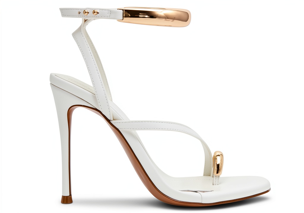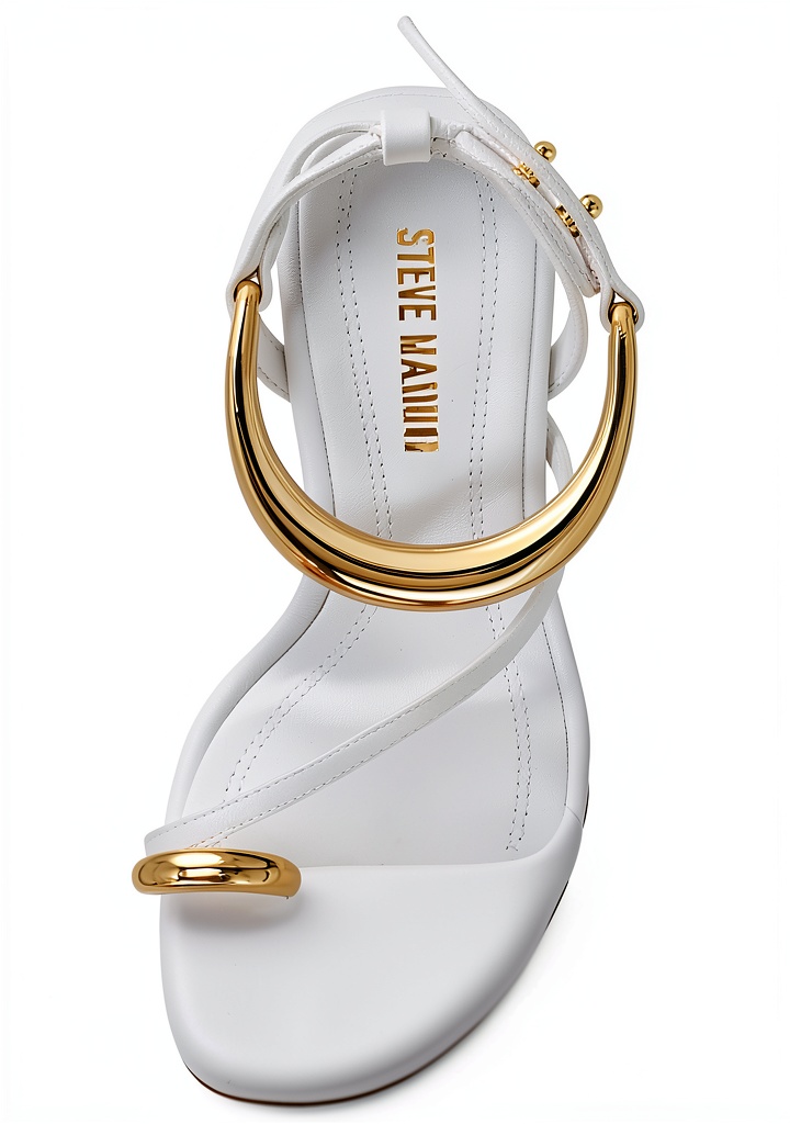 - Bold strappy design with an open almond toe for a sophisticated and eye-catching appearance.