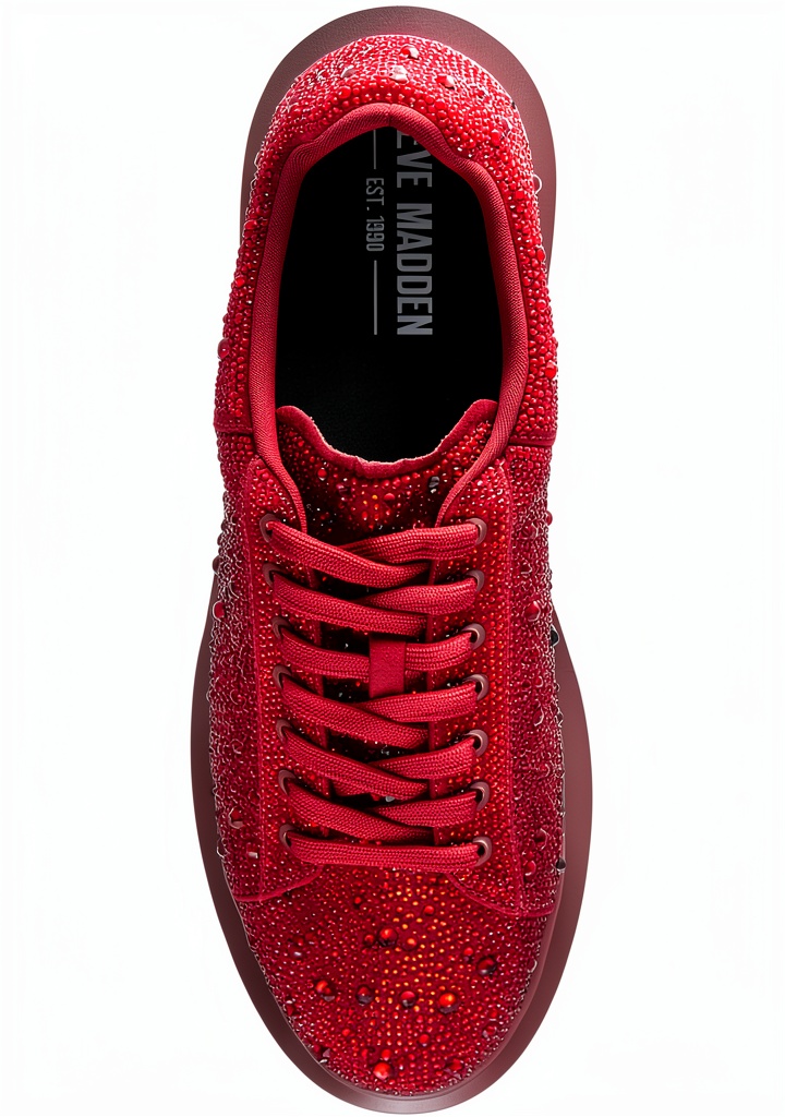 Elevate your footwear collection with Steve Madden womens fashion sneakers, designed for both comfort and contemporary style. These sneakers feature a soft textile lining that ensures breathability and a snug fit, while the durable rubber sole provides reliable traction and long-lasting wear. The lace-up closure allows for adjustable comfort, making them suitable for various foot shapes. Available in an array of sizes from 7 to 13 and colors including Silver Multi, Black Rhinestone, and Red Multi, these sneakers cater to diverse preferences. Model number ICEB04M1, they are crafted with attention to detail, offering a no-heel design that supports all-day wear without compromising on fashion.