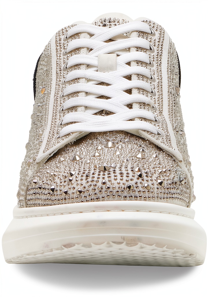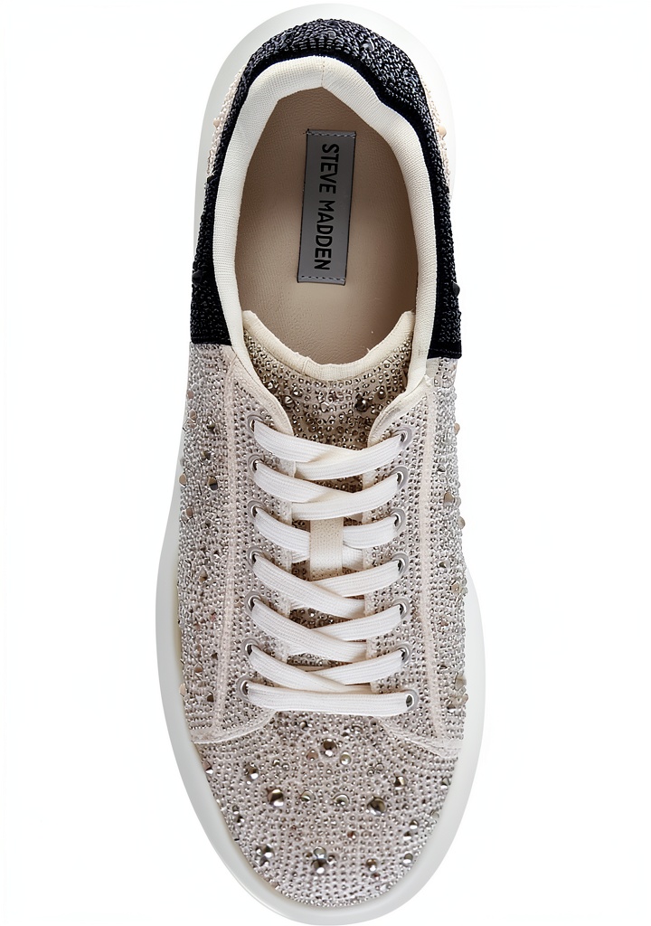 These Steve Madden sneakers combine fashion and functionality, crafted with a textile lining for breathability and a rubber sole for durability. The lace-up closure ensures a secure fit, while the no-heel design promotes all-day comfort. Available in colors like Silver Multi, Black Rhinestone, and Red Multi, with sizes ranging from 7 to 13 to accommodate various foot shapes. Model number ICEB04M1, these shoes are designed for women seeking versatile footwear that blends style with practicality.